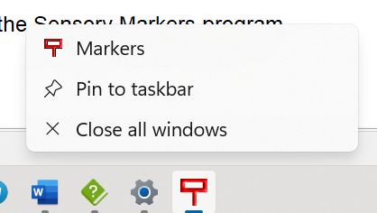 To remove all Markers, right Click on the Program icon in the Windows dock and close the Sensory Markers program.