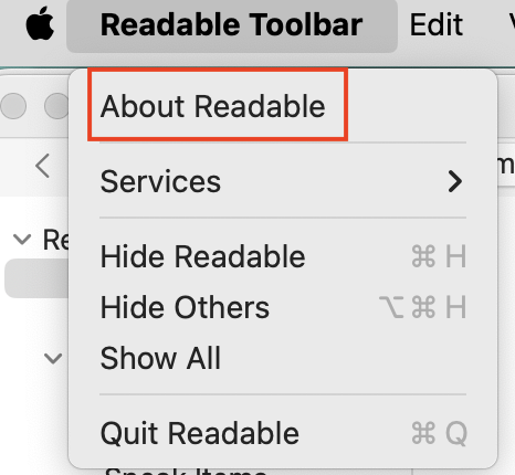 Check your current version of Readable Tool Bar for Mac in the Readable About menu item