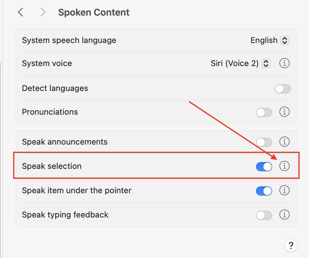 Read Apple Help Page for Spoken Content Settings on your Mac