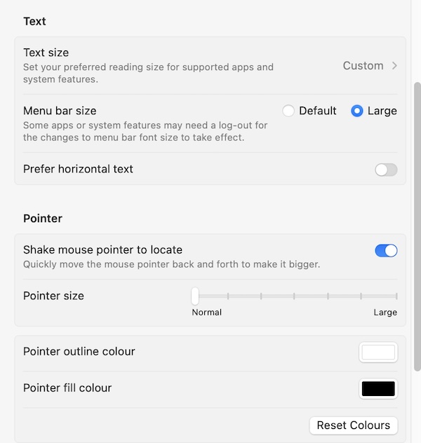 A key aspect of making text readable is modifying the text size, which you can do on the MacOS within the Display Settings