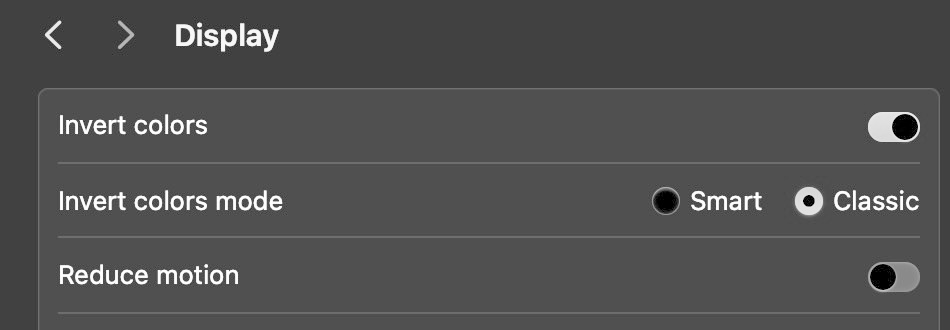 A helpful setting for reducing glare is to invert the colors of the display. A example is below.
